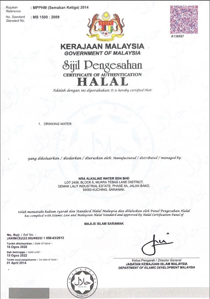 Sweet & Young water is approved by Ministry of Health Malaysia with KKM, Halal and Mesti licences.